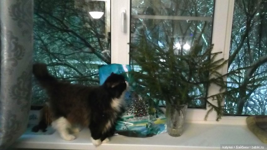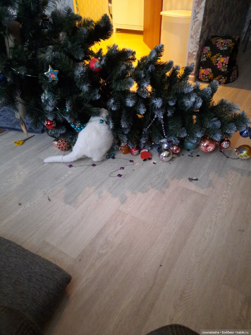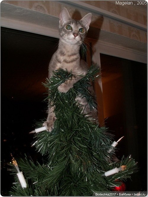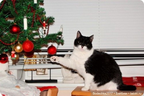 Вот ещё один любитель ёлок, но в молодости… Сейчас уже флегматично собьёт пару игрушек лапой и больше не подходит… возраст)))