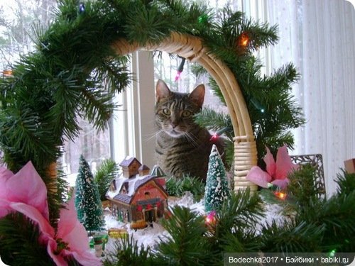 А вот хозяева, которые позаботились об удобстве своих любимцев на елочке!