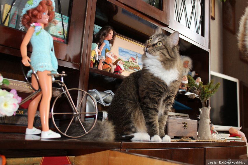 Дорогие Бейбочки.всех поздравляю с Новым Годом! Надеюсь, что он нас не подведёт и с вирусом справится, БЫК всё таки! Примите поздравления и от моей разнузданной Тоськи. Она с любопытством наблюдала, как я украшала дом к празднику и везде пыталась мне активно помогать. Я охрипла крича, ТОСЯ НЕЛЬЗЯ! Наконец то она затаилась и просто стала следить за моими движениями, слегка тревожа кукол. Тоська оказалась достаточно умной и ничего не тронула, не смахнула и не испортила, но в праздничную ночь она бесилась так, что мы от неё шарахаться стали, первого января весь день эта выдрочка спала в самых немыслимых позах, переходя с места на место. Но второго января она начала свой тыкдык так резко и шумно, что грохотом разбудила меня, ну и вы сами видите, что натворила эта умница. Тапком получила по полной программе, а потом легла на спинку кресла и демонстративно грустила часа два. Так что праздник у нас прошёл на ура! Будьте все здоровы, весёлого вам тыкдыка!