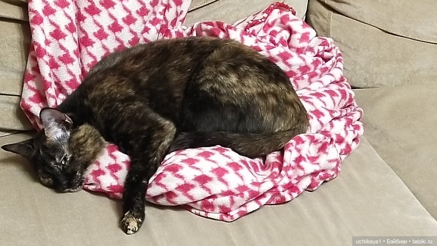 Перед этим Новым годом Ксюшенька почти полностью ослепла (ей почти 18 лет). Теперь она встаёт только чтобы дойти до лоточка и мисочек с едой.