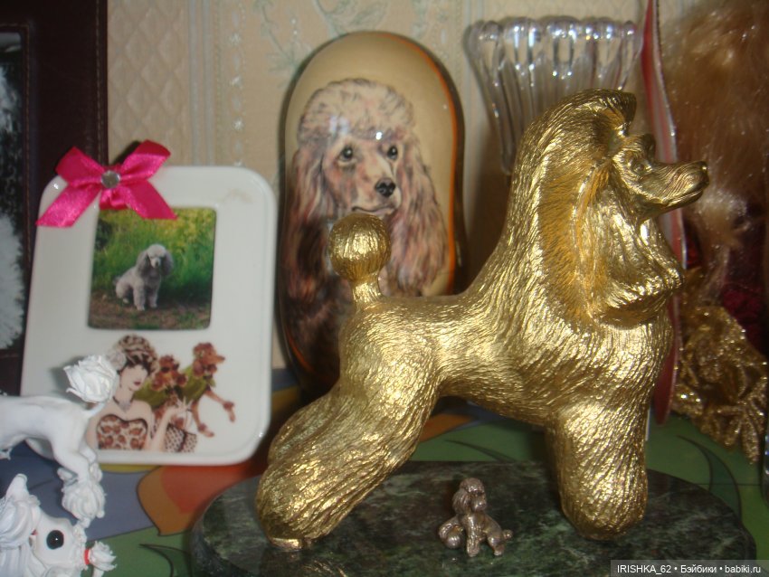Обожаю пуделей! Пудель- моя первая собака, выросли вместе, прожил с нами 13 лет, за это время накопилось много игрушек, статуэток, открыток и пр.ерунды с изображением пуделят. Часть коллекции хранится где-то в коробках, в шкафу. Теперь у меня той- терьерчик, новая любовь, сопит рядышком. Здоровья и долголетия вашему пушистику, пусть радует вас, как можно дольше!
