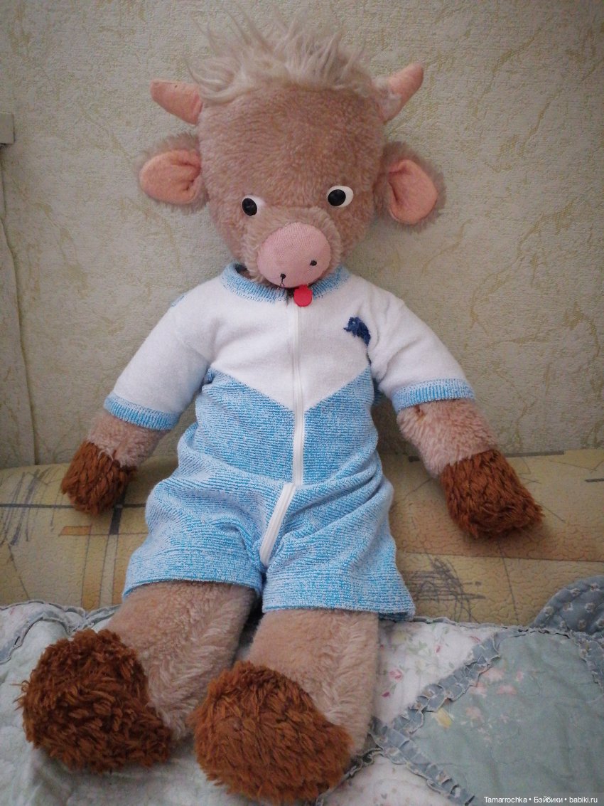 Вот привезла с дачи на обновление свою коровушку одну из любимейших.Когда играла в школу, она была ученицей. И вообще из мягких играла с ней в основном.