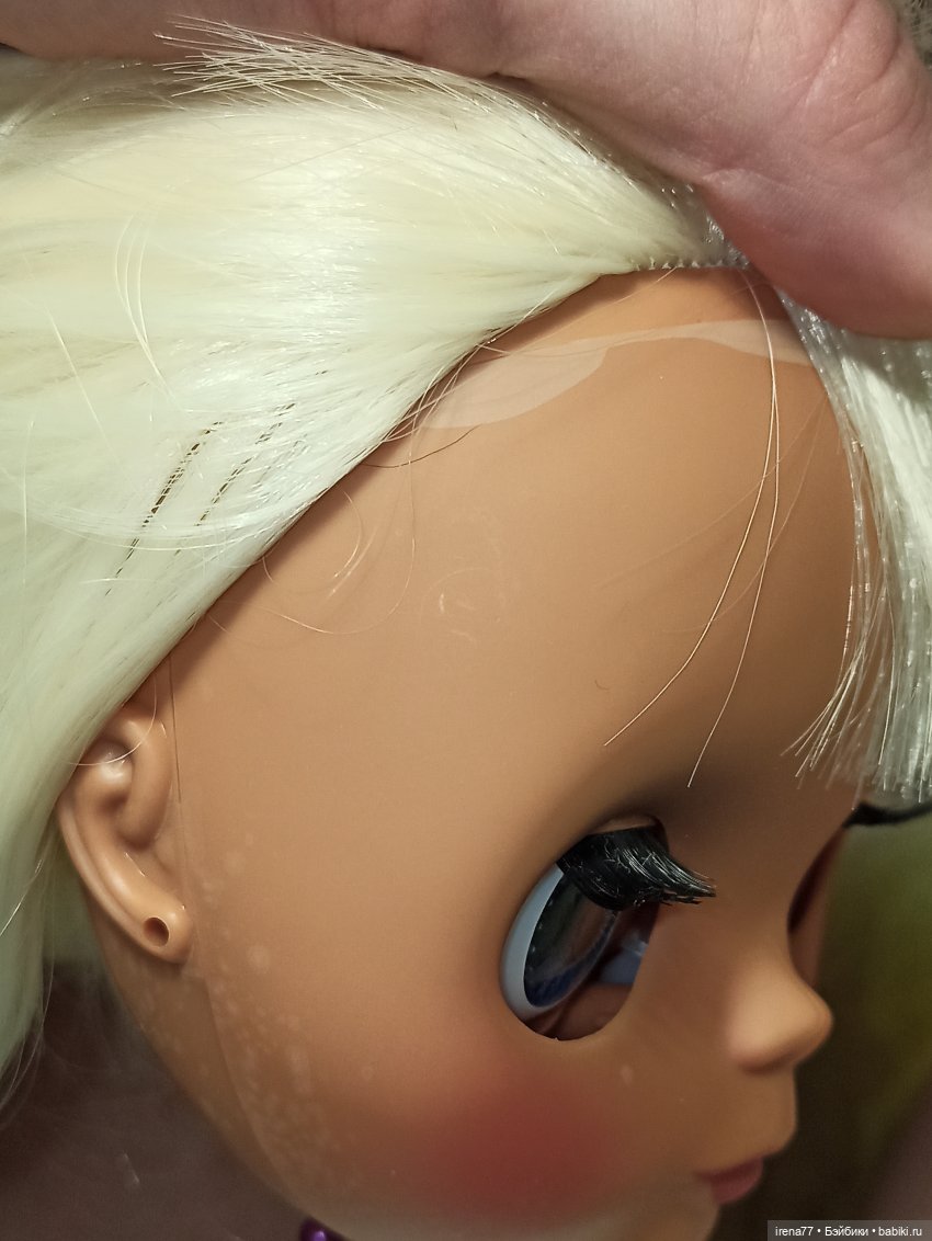 Стоит на полочке, от солнца защищена шторой. Но пару месяцев назад, заметила на личике светлые пятна. Причем, не со стороны окна. А сегодня заметила, что пятен стало больше. Её никто не трогает, и ничего на нее не брызгал. Это точно.