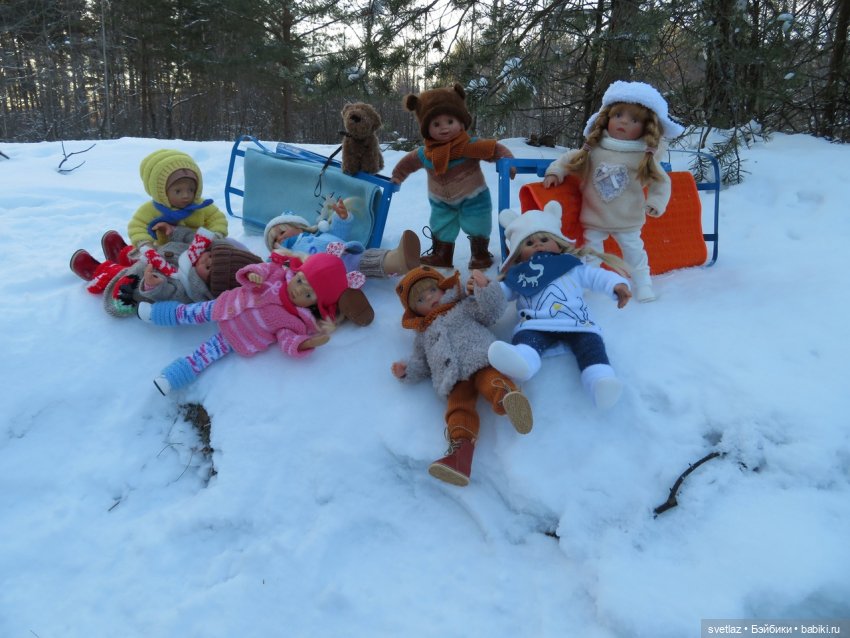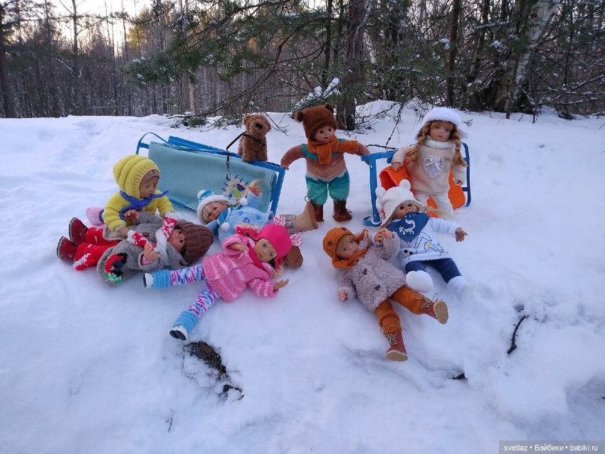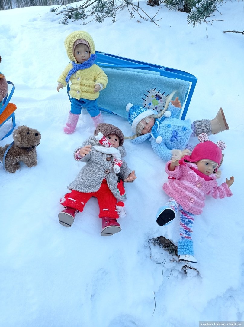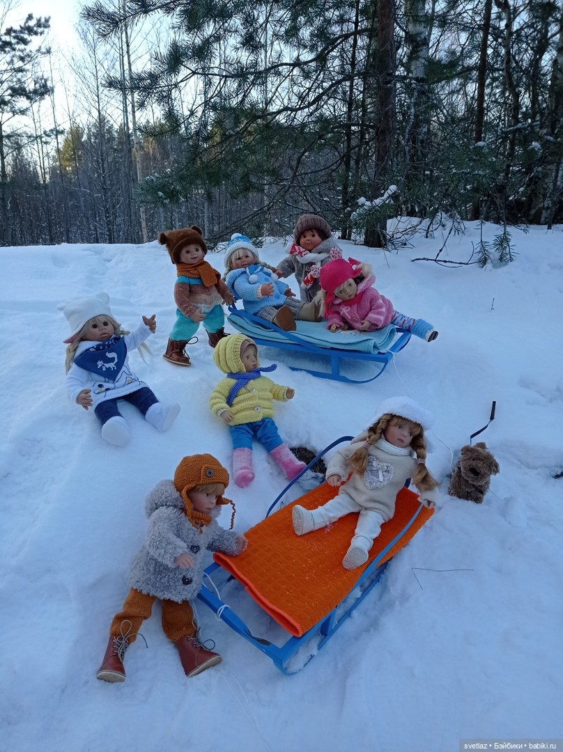 Дальше, дорогие читатели, мы опустим все ненужные слова и покажем, как наши куколки нашли снег! Малыши резвились, играли, смеялись, катались с горок, любовались природой и изучали новое. Да, и наконец-то мы смогли выгулять наши санки, т.к.кто помнит, прошлой зимой снега у нас не было совсем.))))