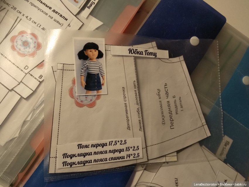 И потом, если я захочу повторить эту модель даже и в другом оформлении или ткани, я сразу легко нахожу нужный конверт в папочке, куда и складываю эти конвертики по видам кукол.