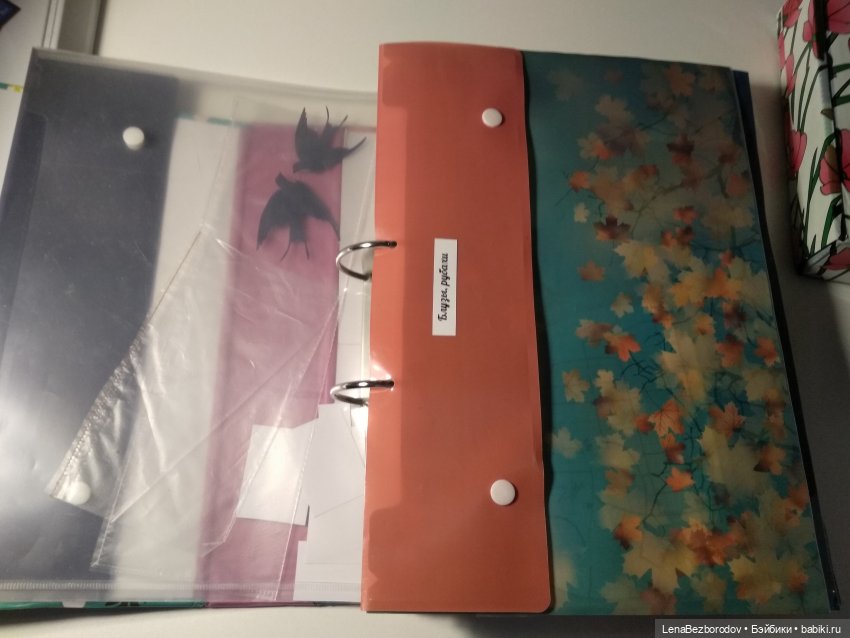 и листочки с выкройками из скользких файликов папок случайно не разлетаются.