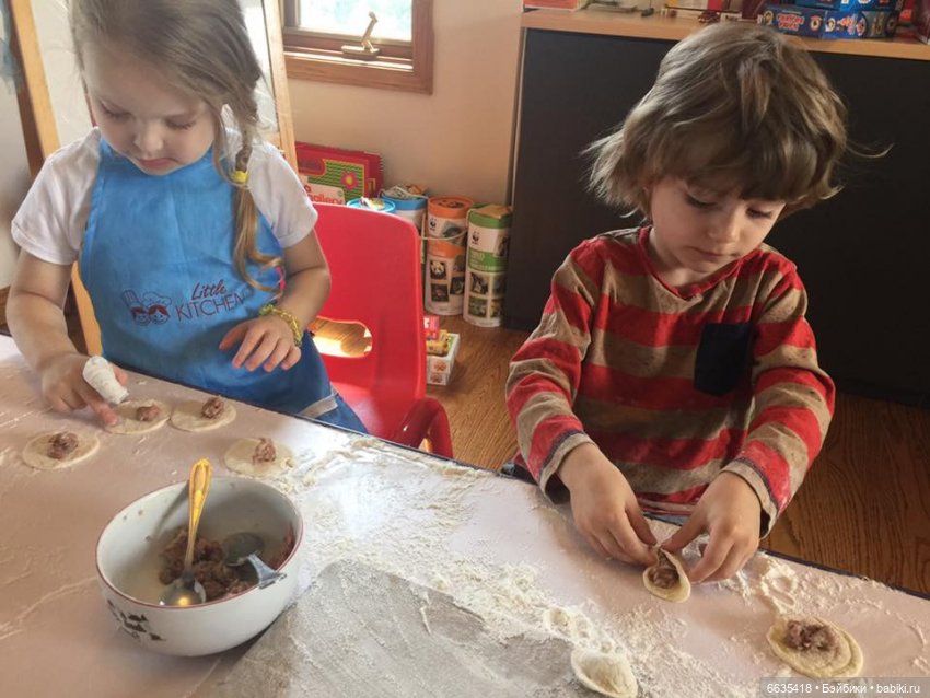 По фото, где дети лепят пельмени (оно выше) отгадай кто мой младший внук, пожалуйста.