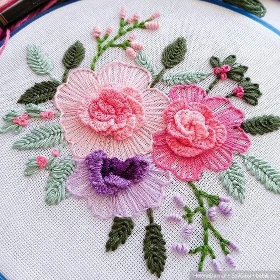 Как приснился этот рисунок на голубом. Даже не сам рисунок- особый прием вышивки. И ничего не говорите, я сама придумала вышивать цветочки с подложкой.