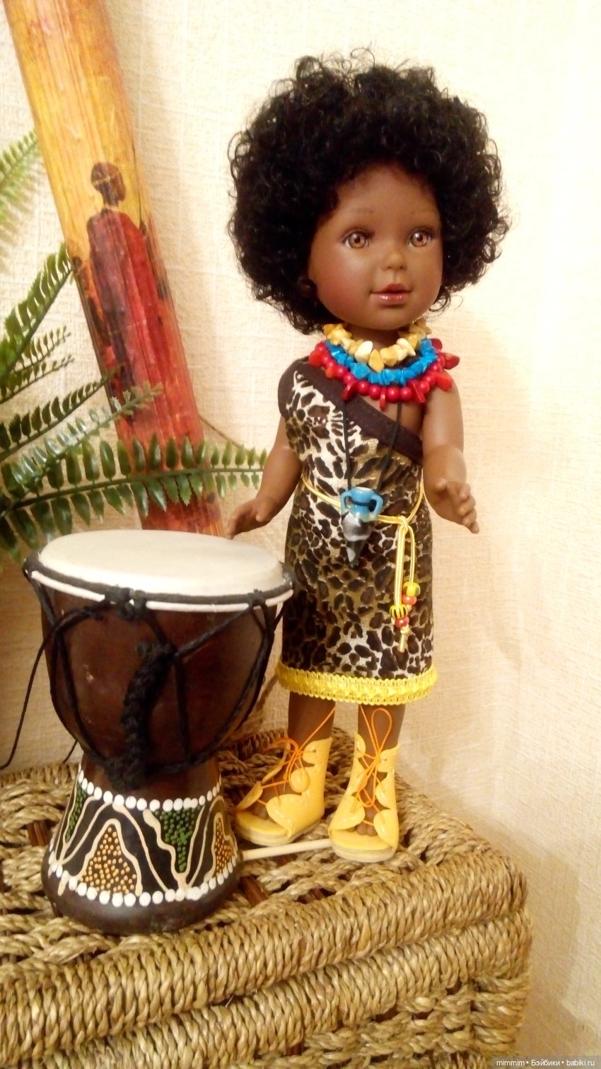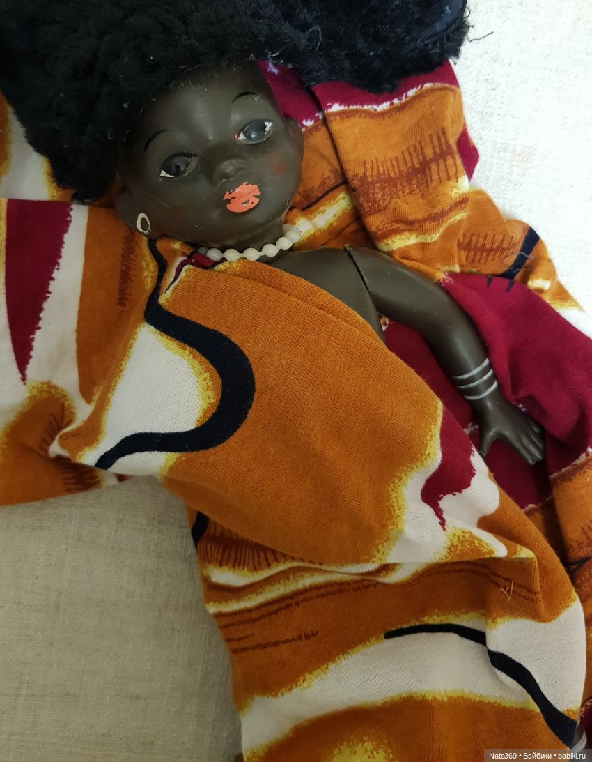 Я в детстве такую куклу немедленно раздела, сообразила ей парик и другую одежду.
