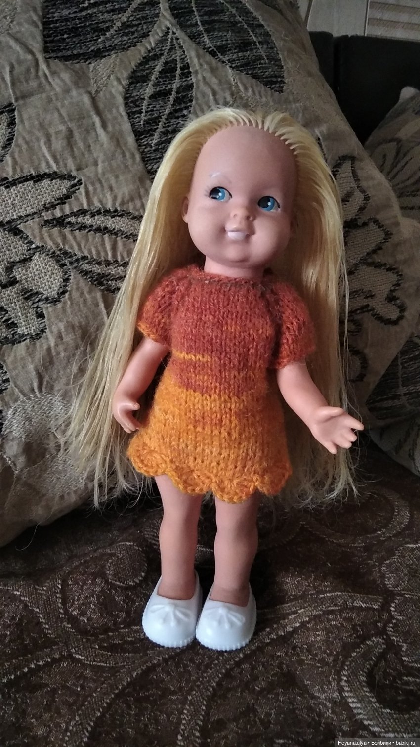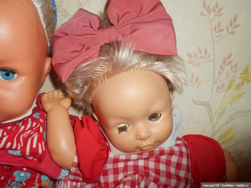 Оказывается кукла-то довольно редкая. Производства ГДР, начала 60-х. И в уникальной модификафии – с молдированной прической. Их называют Криворучками/ Rauenstein. На аукционах недешево стоят (правда в хорошей сохранности и аутфите).