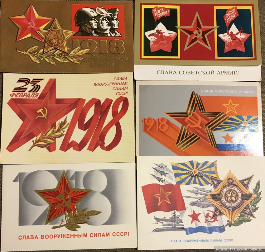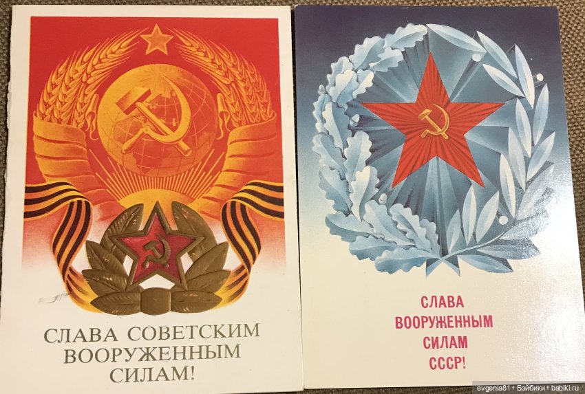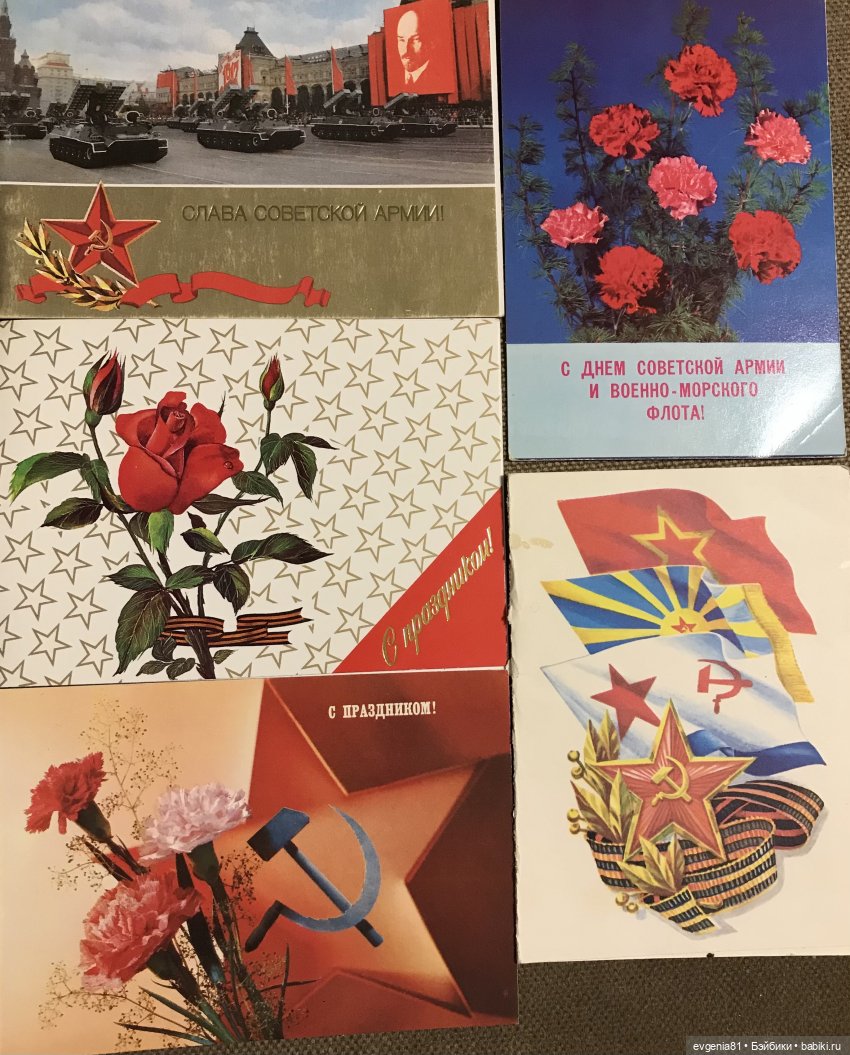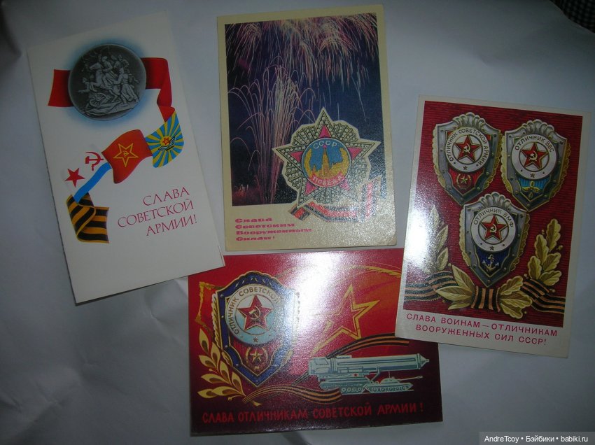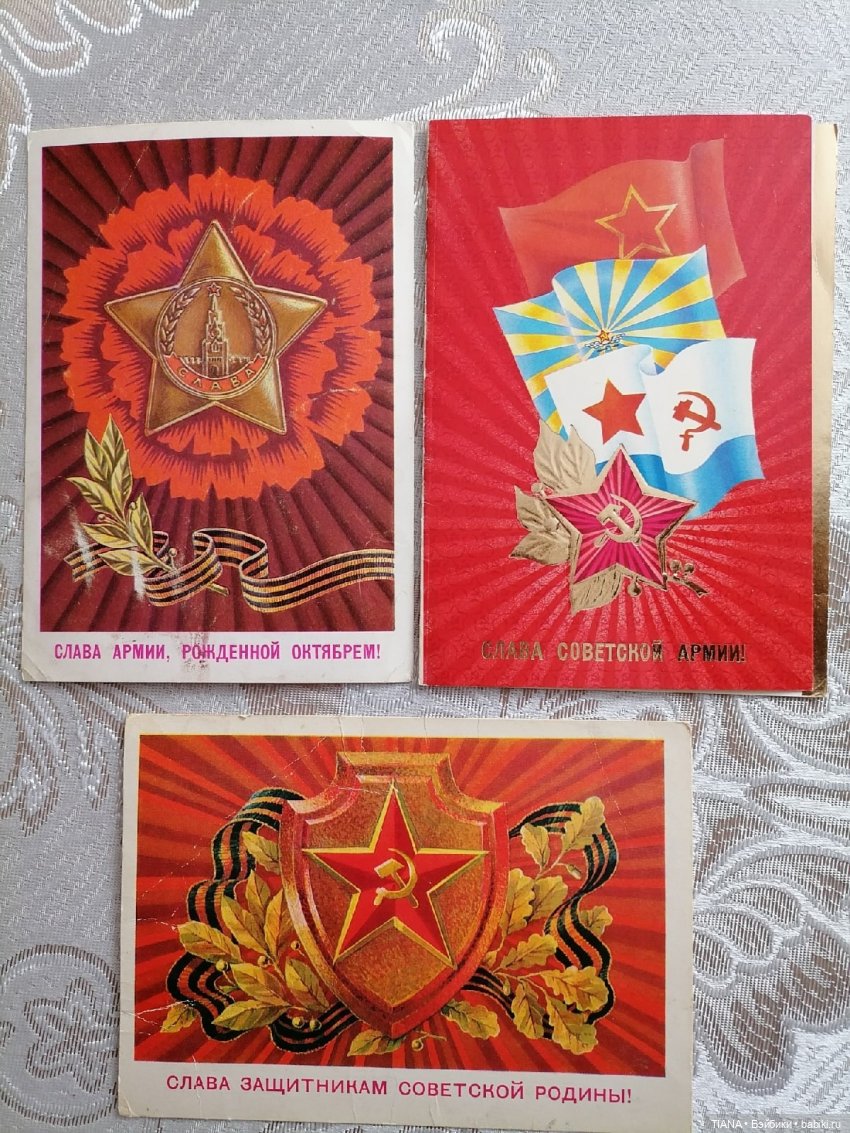 У меня служили все родственники, дедушки участвовали в Великой Отечественной войне, муж — военно-морской врач, брат — лётчик, так что и подписывали, и получали много открыток с этим праздником, но вот открытки из советских времён не сохранились, увы…