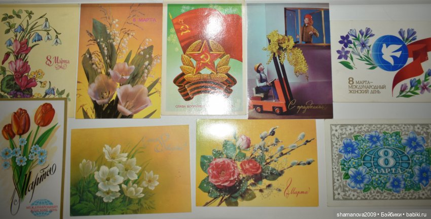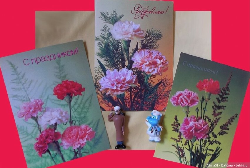 Открыточки к празднику в доинтерентные времена всегда отправляли по почте всем близким и родным. Целый ритуал с покупкой и рассылкой был. На почте и в киосках «Союзпечати» всегда был богатый ассортимент…