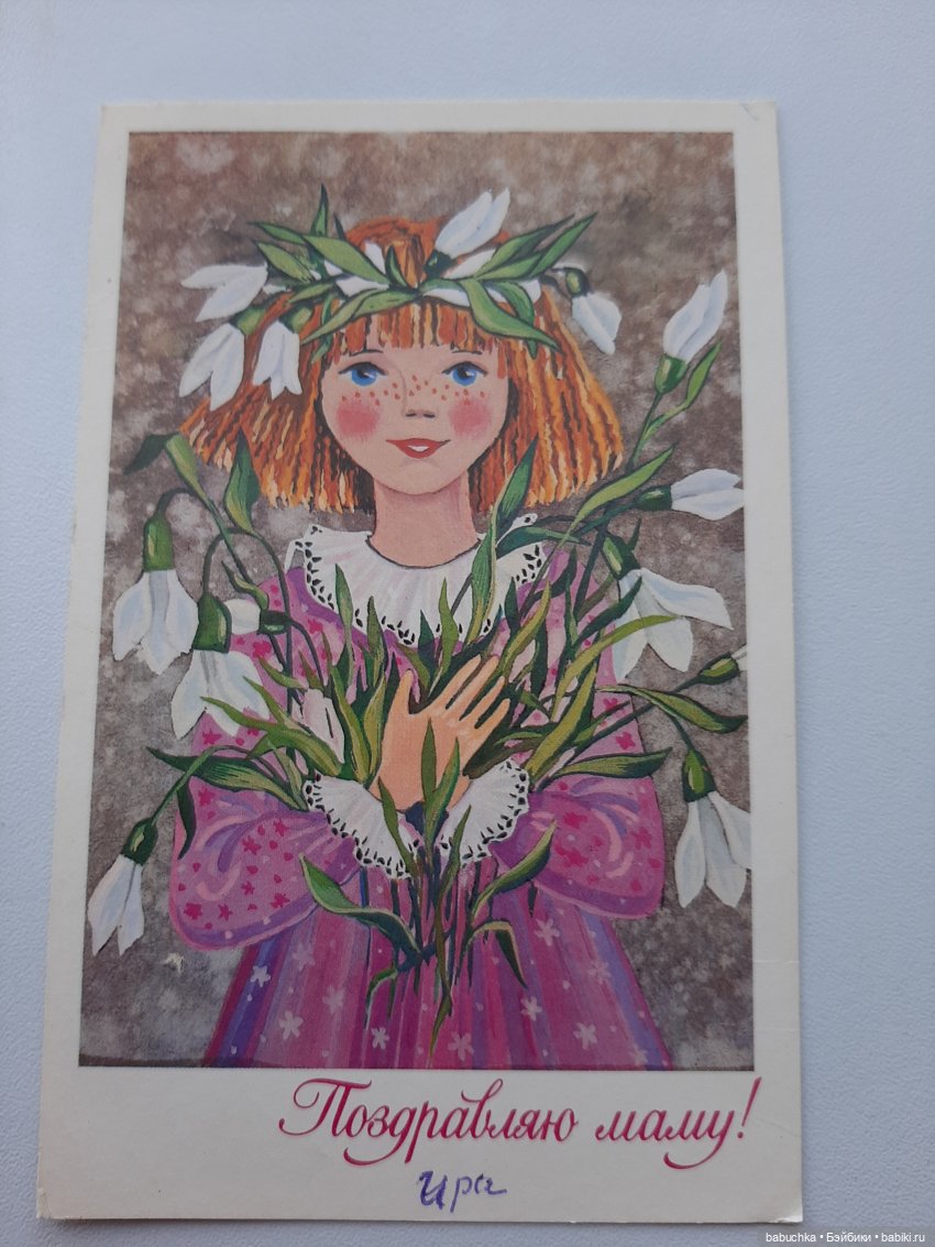 Девочка с куклой была моя любимая открытка с 8 марта. Художник И. Искринская.))