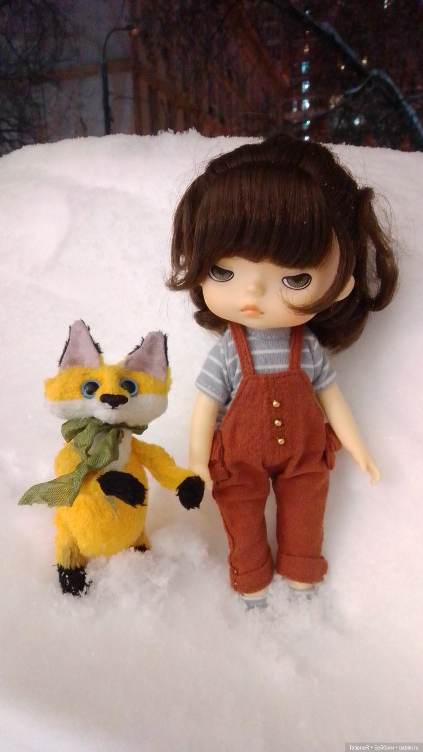Идти по улице, с выглядывающей из сумки куклой, легко. Особенно когда рядом шагают дети))) Но вот пытаться поставить и сфотографировать как-то не ловко. Пока стояли на светофоре, увлеченно делала снимки. А потом поймала недоуменные взгляды пассажиров автобуса…