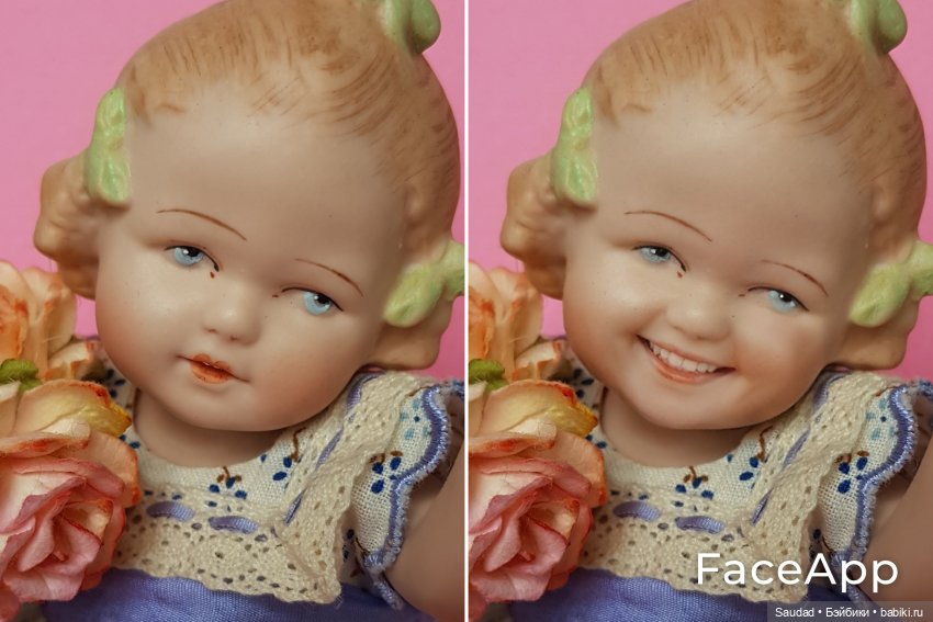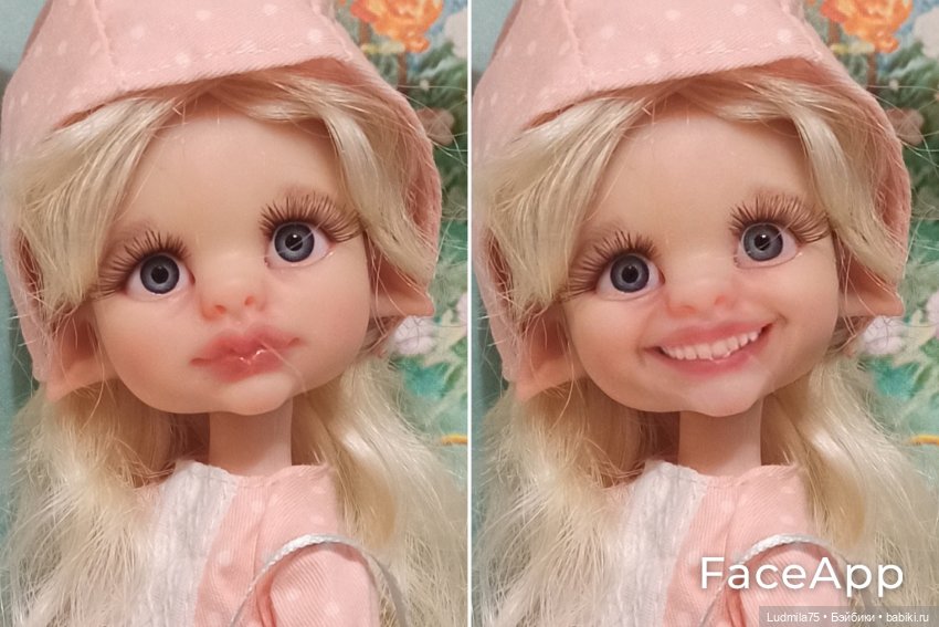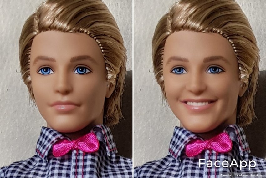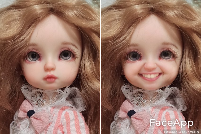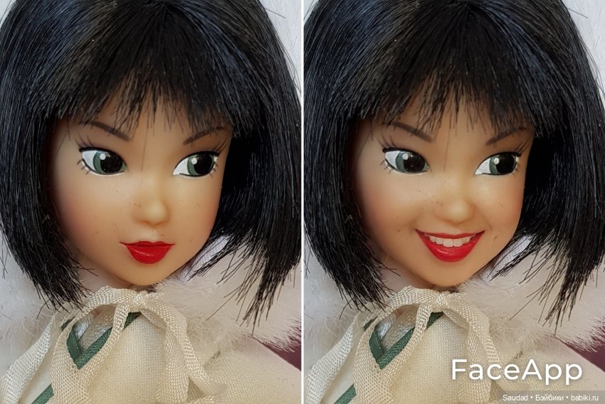 Всем привет! Недавно я смотрела топик, как снимали с куклами сказку «Три орешка для Золушки». И увидела там фото кукол с улыбкой. Автор топика рассказала, что использовала приложение FaceApp.