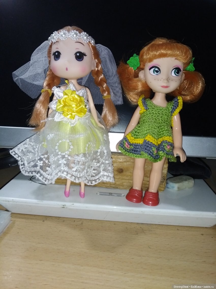 У меня живёт Анна из пятерочки, малыш виниловый оттуда же, и такая, как посередине в розовом в горошек, только невеста в жёлтом)