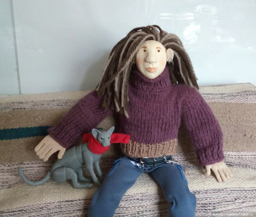 С этой точки зрения я на неё не смотрела. После того как мы решили, что нечего ей делать в коробке, я стала с ней убатарейно играть. А тут топики один к одному: то у Ликки день рождения, то Калинку-дюмовочку показывают. Вот и захотелось мне примерить красный на «Мурзилку». Так и живёт с кличкой, без имени. Вещи с чужого плеча. Но любимая! И отправляющая в детство просто как пупсики-баболики.