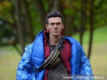 Я всё хотела сделать с куклой типа фэмили лук, чтобы одинаковая одежда. И чтобы не шить, я выбирала из своего и его гардероба нечто похожее. Я там тоже в синей куртке, красном свитере и с сумочкой, фотки нету, на компе наверно.