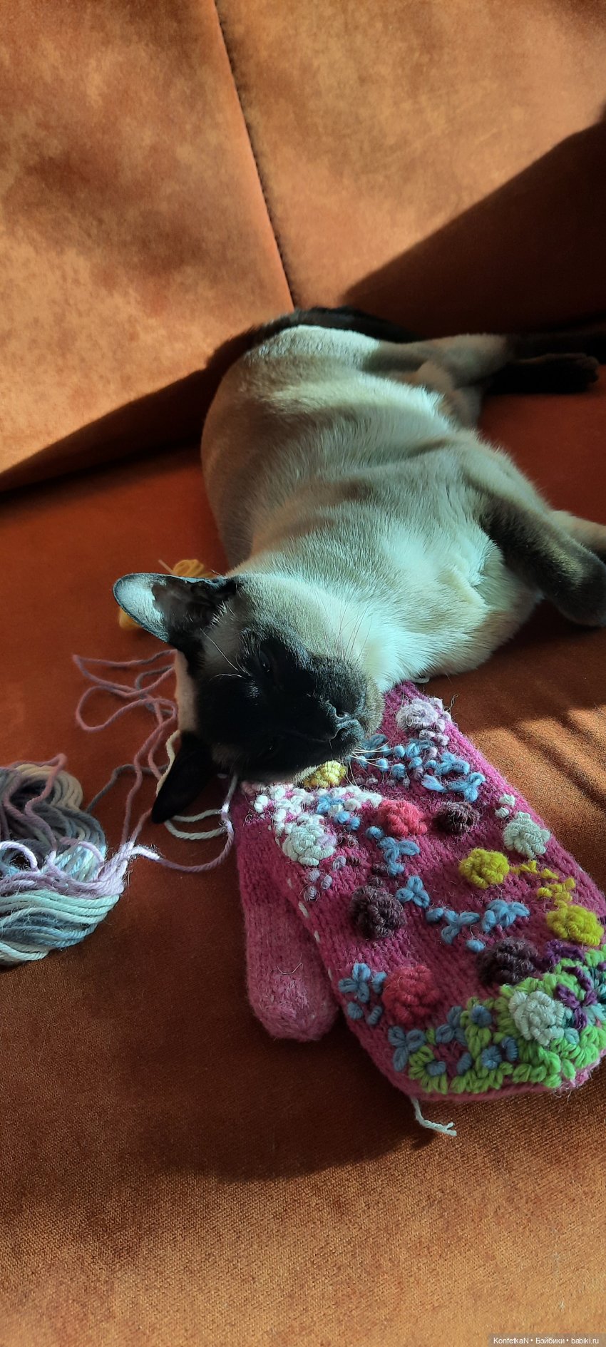 это она мне помогает в вязании. Охраняет, пока я за чаем хожу на кухню.
