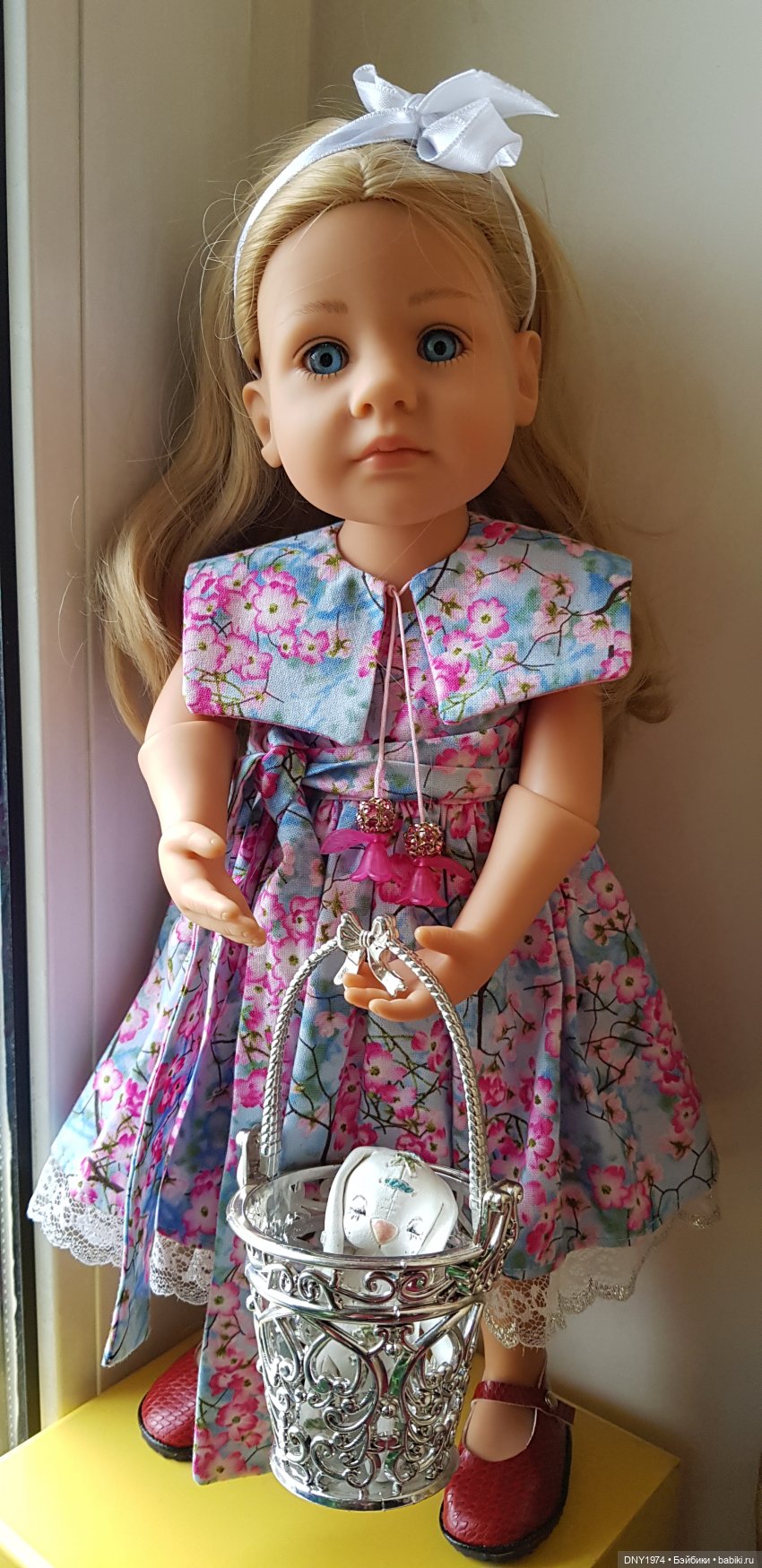 Кофточка на верхнюю пуговку не застегнулась. А платье прекрасно. Вообще-то на Каори лучше всего от диснеек наряды.Кстати, платье с зелеными цветочками на Габи от кармешки. И на Каори прекрасно!!!