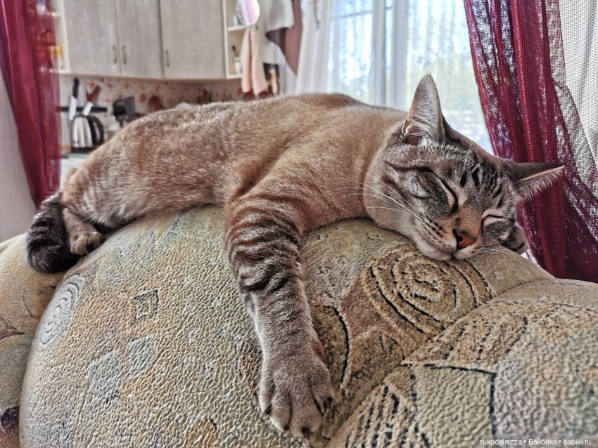 Огромные, вымаливающие пищу глаза, тихие вздохи. Лапка, постоянно трогающая руки. Малюсенькие порции 3 раза в день совершенно не насыщали кота и Лаполеон начал изображать голодные обмороки.