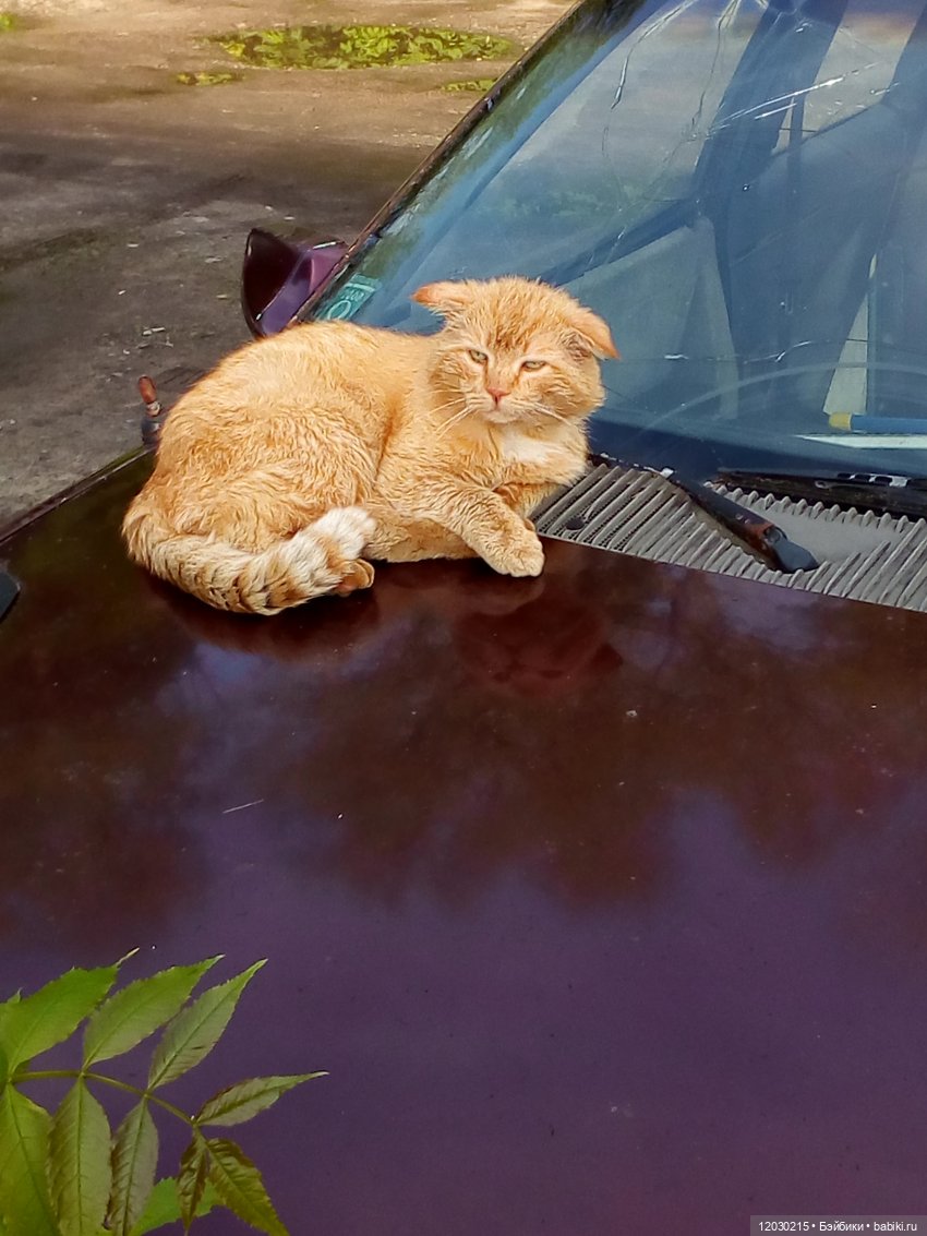 А это Кузин папа, расположился на чужой машине, потому что прошел дождь, и на земле сыро и грязно.