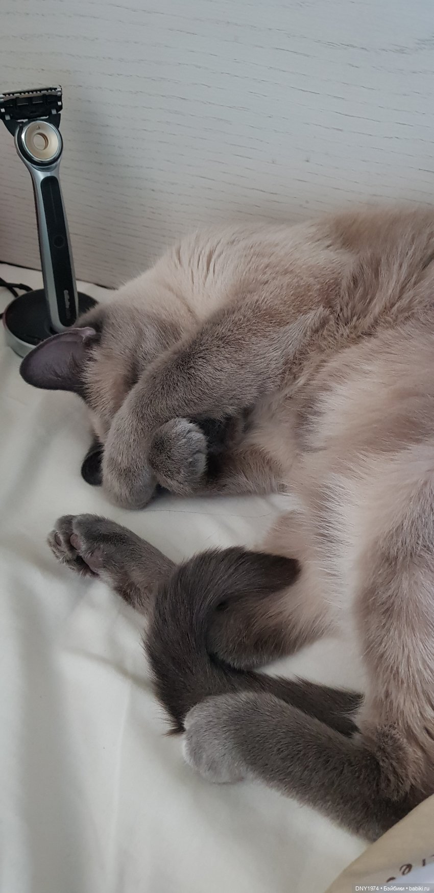 Мой Кузя полностью доверяет мне и живот погладить, только мурлычет от удовольствия.