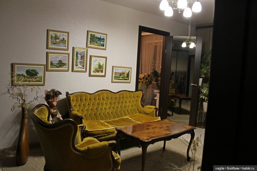 предметы мебели----Диванчик, стол, качели делала сама. Ещё мебель из фикспрайса перекрашивала.