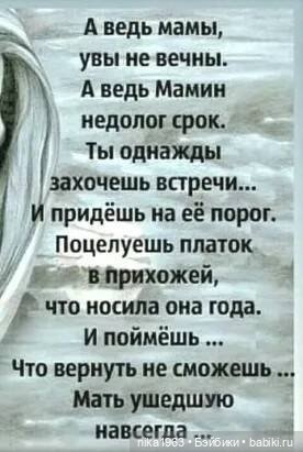 У кого мамы живы — цените каждый миг, не обижайтесь, не ссорьтесь по пустякам(это я и себе сейчас говорю).