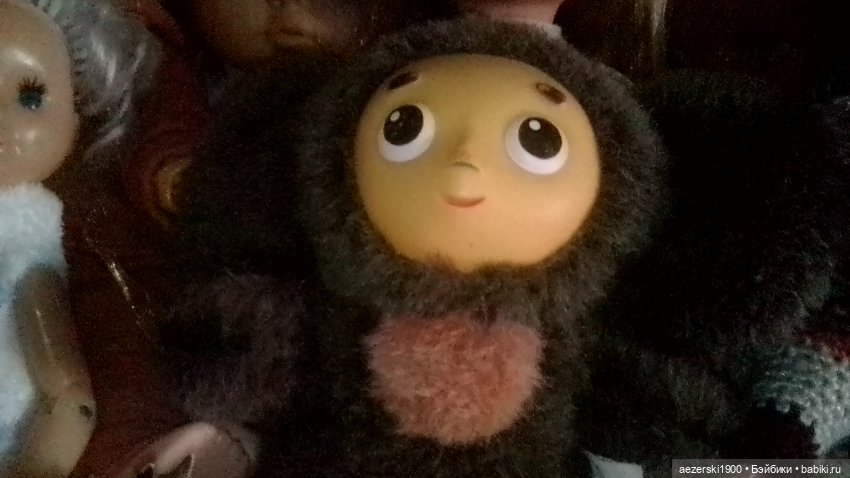 А к нам Чебурашка пришел сам. Вот и живёт на полке с куклами