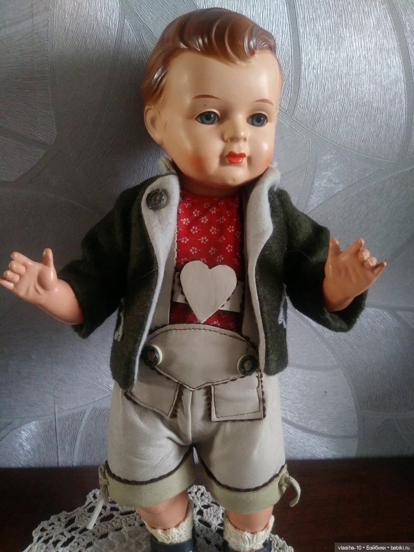 Добрый день, дорогие друзья. Нужно, ваше мнение, ваш совет, так сказать, взгляд со стороны. Недавно приехал ко мне замечательный малыш фирмы Bruno Schmidt. Ребенок просто замечательный, очень живой, подвижный, в очень хорошем состоянии. Я влюбилась в него с первого взгляда, и очень боялась, что кто-нибудь опередит меня с покупкой. Теперь малыша надо одеть.У меня нашлось для него два наряда, вот какой из них выбрать, а может вы предложите одеть его во что-то совсем иное? Буду рада выслушать ваши предложения. Всем заранее благодарны. Наряд №1.В нем малыш совсем малютка, грудничок.
