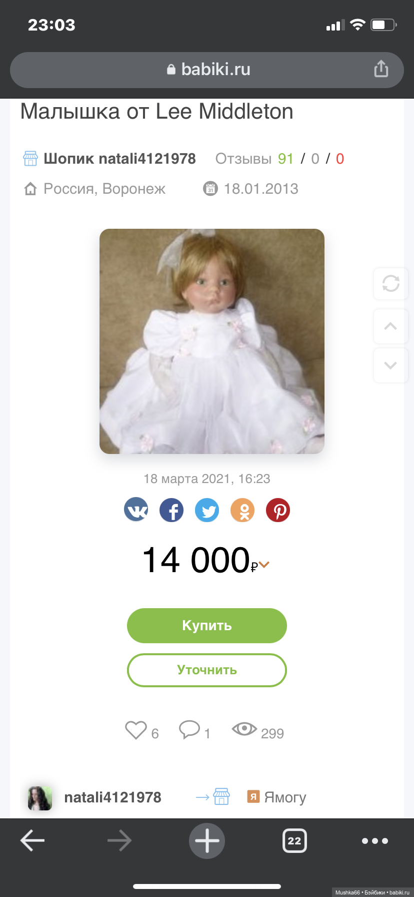 Смотрю на нее, и понимаю, что не прижилась у меня куколка: размер не мой, лежит в шкафу, скучает. Вот и решила ее продать. Подскажите, пожалуйста, как называется эта кукла и сколько она может стоить.