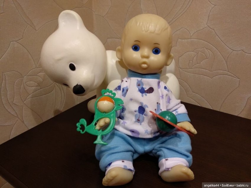 А это я со стареньким мишкой моей старшей сестры и с её любимой куклой: