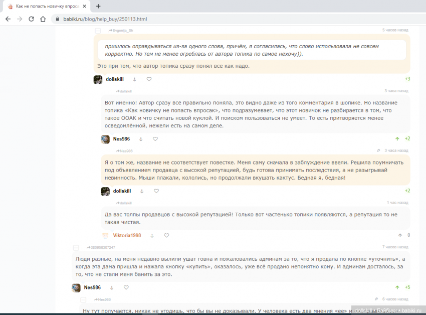 В копилочку странных покупателей, обожающих кукол. Одна дама требует забанить продавца за то, что он продал не тому, кто отправил заявку, а тому, кто первый написал. То, что её заявка была подана когда продавец ждал оплату, даму не волнует))