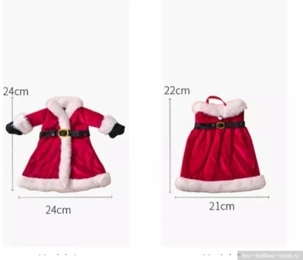 Размеры на фото, костюм на Дела Мороза (Санта Клауса) и Снегурочки.