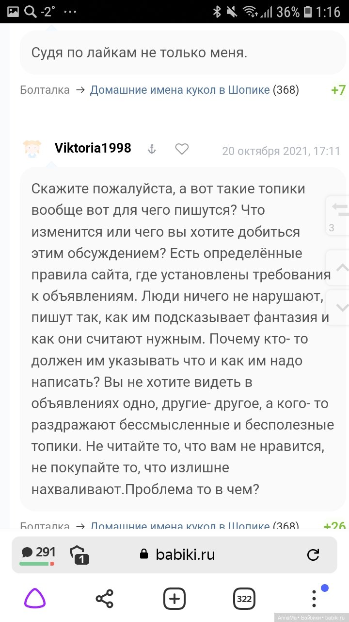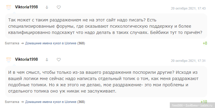 Не расстраивайтесь, ну хочется Виктории самоутвердиться. Как я поняла куклу она и не собиралась покупать. Вот только зарабатывать имидж за счёт склок не лучший вариант для неё вариант.