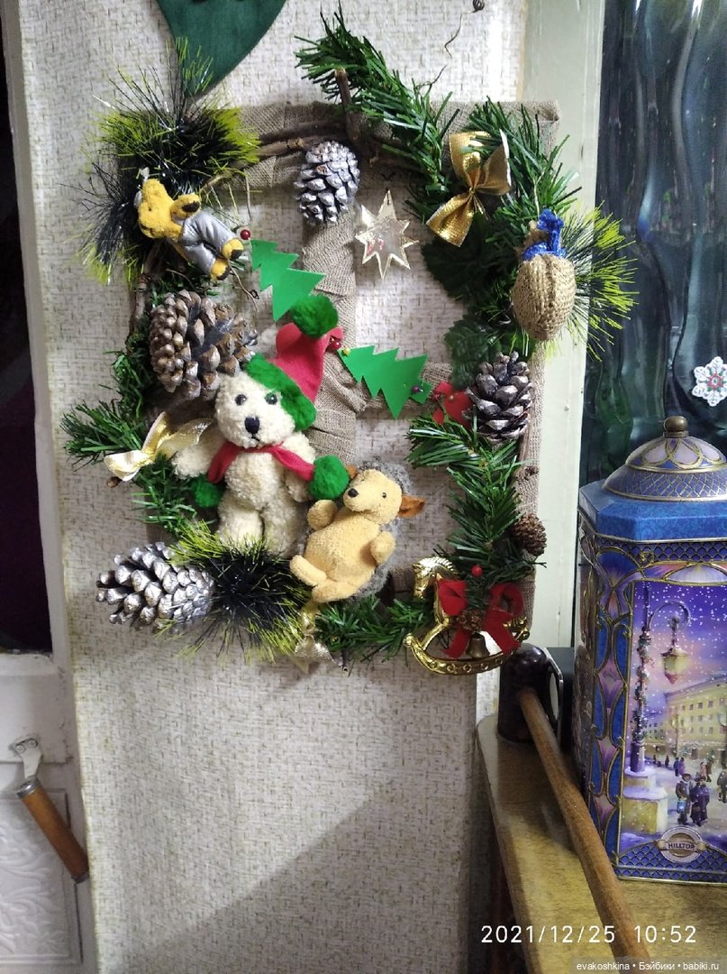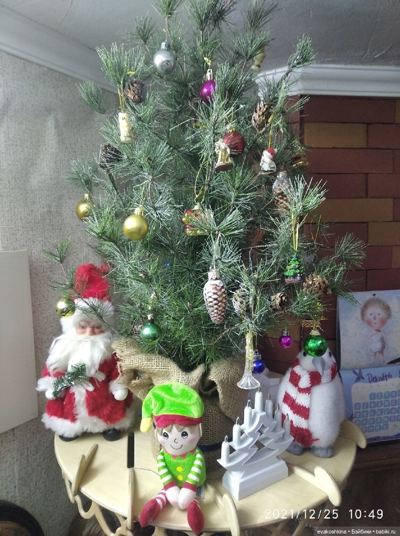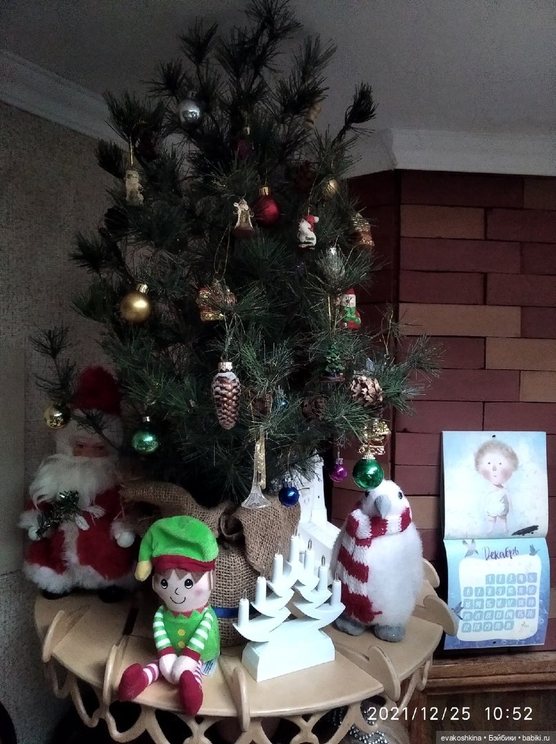 Здравствуйте мои хорошие, в преддверии нового года хочу с вами поболтать и показать елочку в этом году. Сейчас моим детям: старшему 5 лет, младшему 10 месяцев. Так как они озорники пришлось купить маленькую елочку и поставить ее на комод. Игрушки все вязаные, каждый год покупала у разных мастеров для своей коллекции. Дети их очень любят и главное, что они не могут их разбить. Звезда на верхушке времён ссср, ее сделала такой красивой замечательный мастер по росписи Хохломой. Я люблю эксклюзивные вещи, поэтому тоже сама не отстаю. Сундук возле елки я сделала сама в технике декупаж. В нем храню вязаные игрушки для ёлки, а когда елка наряжена в сундук ложим письмо для деда мороза и ночью канун нового утра, появляется подарок от деда мороза. Сыну эта так нравится, что в дальнейшем я планирую сделать второй сундук для младшего.