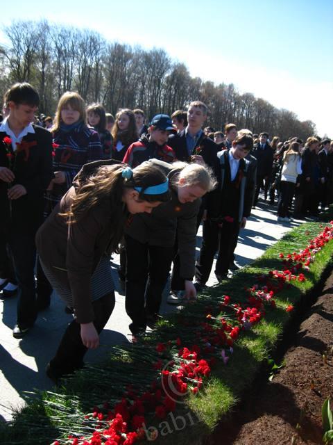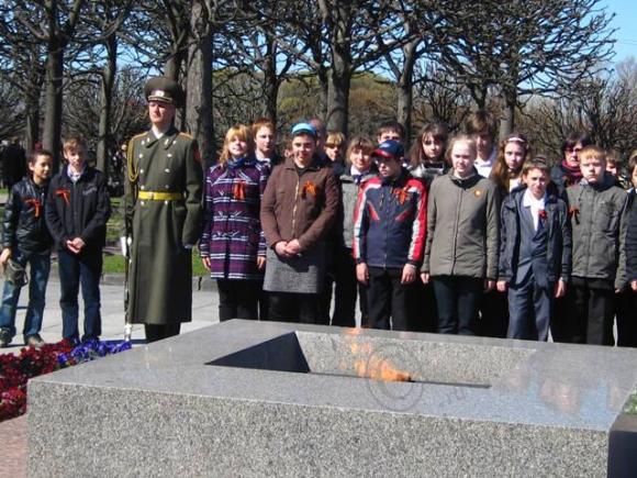 Накануне праздника я со своими ребятами была на Пискарёвском мемориальном кладбище, где семиклассники возложили цветы на могилы ленинградцев, погибших в блокаду. Страшно подумать, но на Пискарёвском кладбище лежит полгорода…