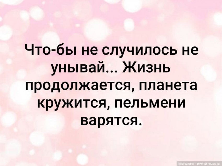 Жизнь продолжается, не стоит унывать, надо верить в лучшее! Все обязательно наладится!