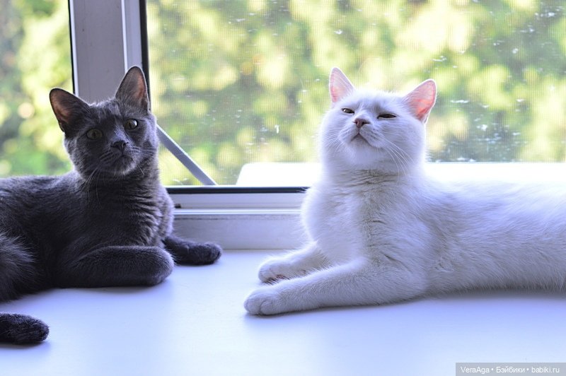 Вот как раз слева младшая Юлька и справа глухая Мышка. Говорят белые кошки часто глухие-я не знала…