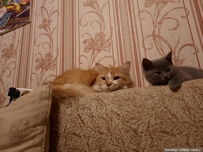 Отличная у Вас хвостато-усатая компания! На фото старенький любимый котик Фантик и серенькая подобрашка Аська. Фантик живёт в компании рыжей кошки Мики уже много лет. А Асеньку пристроили свекрови, она её обожает. Асёнок бежала от своры собак и кубарем закатилась в открытую дверь у меня на работе. Пройти мимо не смогла. Деточка ведь совсем. Теперь свекровушка её воспитывает (или наоборот 😉)