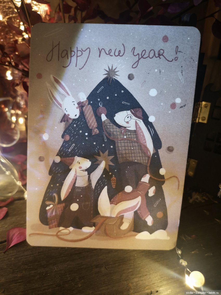 4. открытку надо подписать, это может быть поздравление с новым годом или ещё что-то приятное.