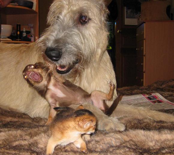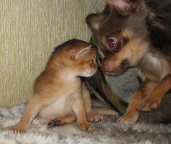 А кто такой малюсенький из семейства кошачьих, по котёнку не разберу, кажется вислоухий, каков храбрец! И окрас классный!