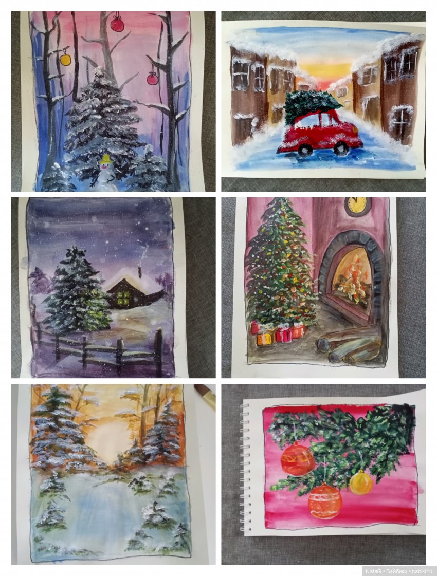 Озадачилась в этом году рисованием нг открыток. Правда формата А4))))