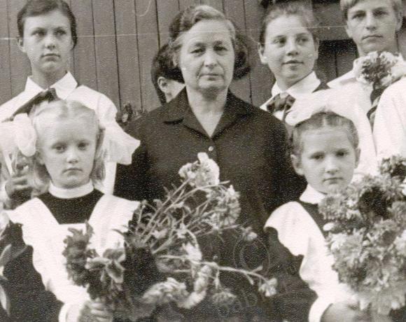 Это с первой учительницей! Антониной Александровной, Царство ей Небесное, за то, что выдерживала нас!