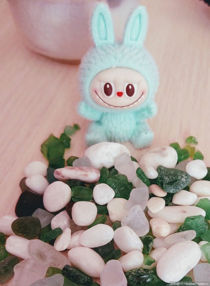 И мы с некоторыми стекляшками( свежий улов с моря) и зверем попали в цветовую гамму)))