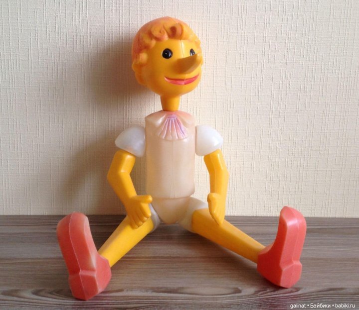 У моих дочек в 90е годы был такой большой смешной Буратино полиэтиленовый и поменьше-резиновый. Игрушек этих нет уже, к сожалению. В интернете нашла их фото:)