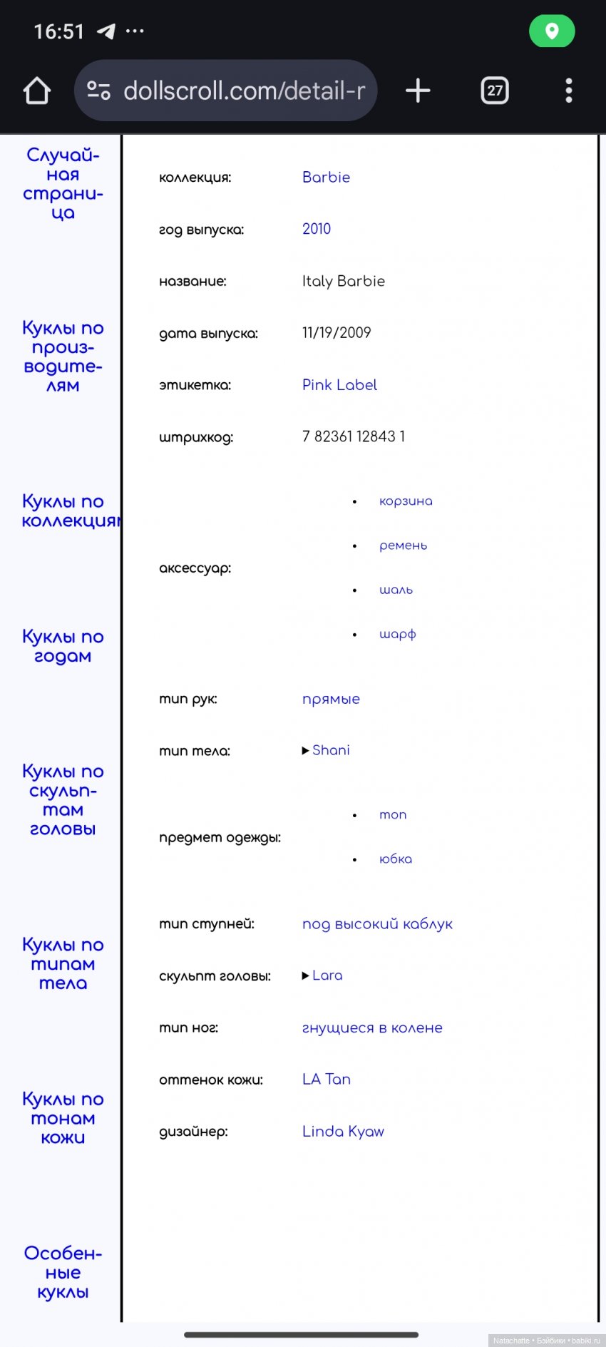 Barbie, молд Анна-Лара.
