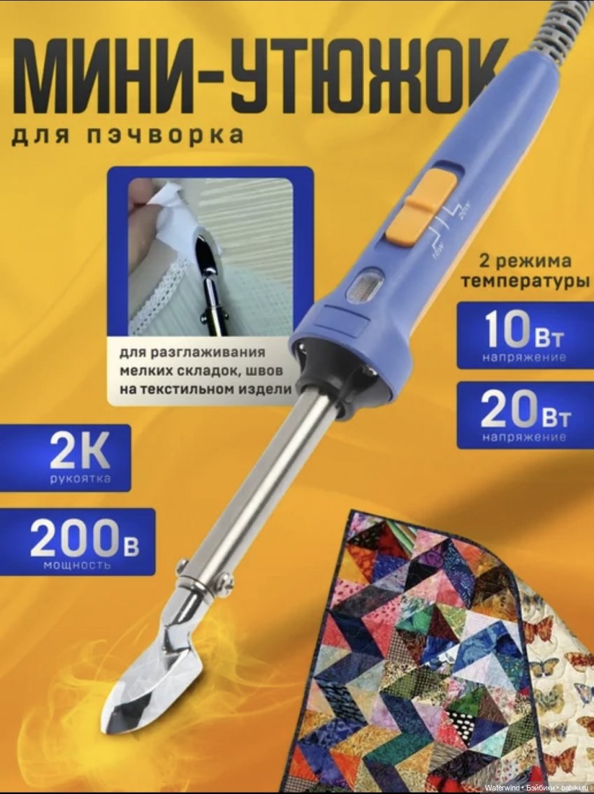 был и утюжок для пэчворка, но совершенно не понравился, греется относительно долго, утюжит не все ткани, ну разве что подлезть везде можно