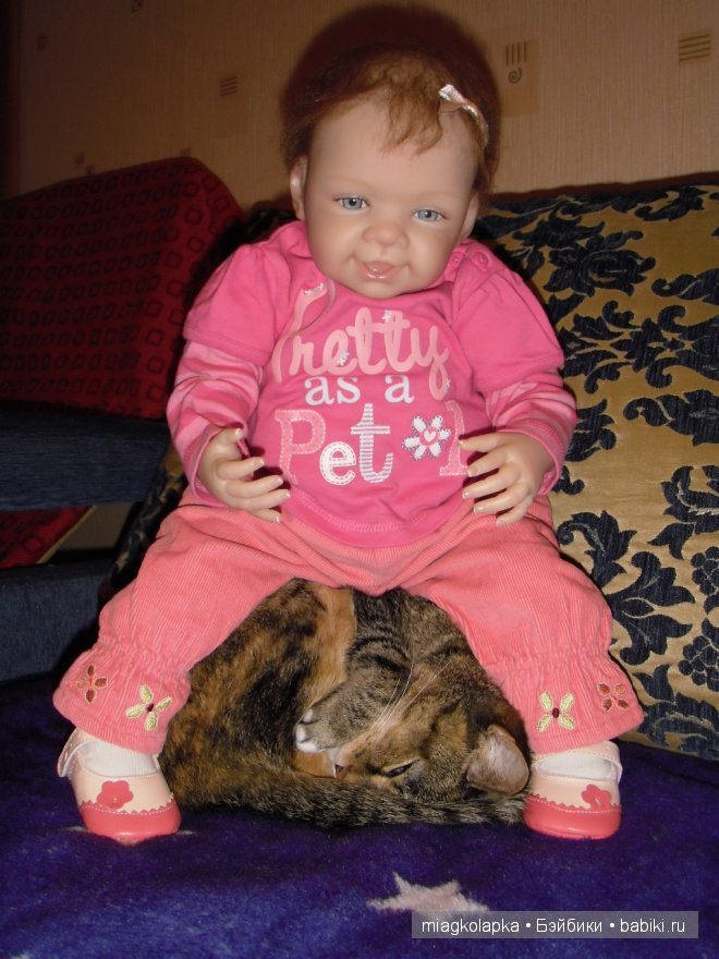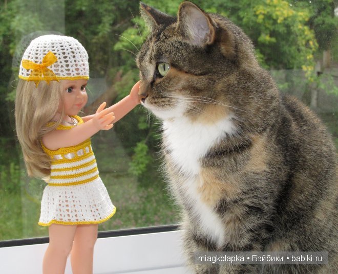 У нас коты с куклами не особо общаются, и фотографий их с куклами я не нашла ни одной… но зато нашлась вот такая «кото-куколка»: